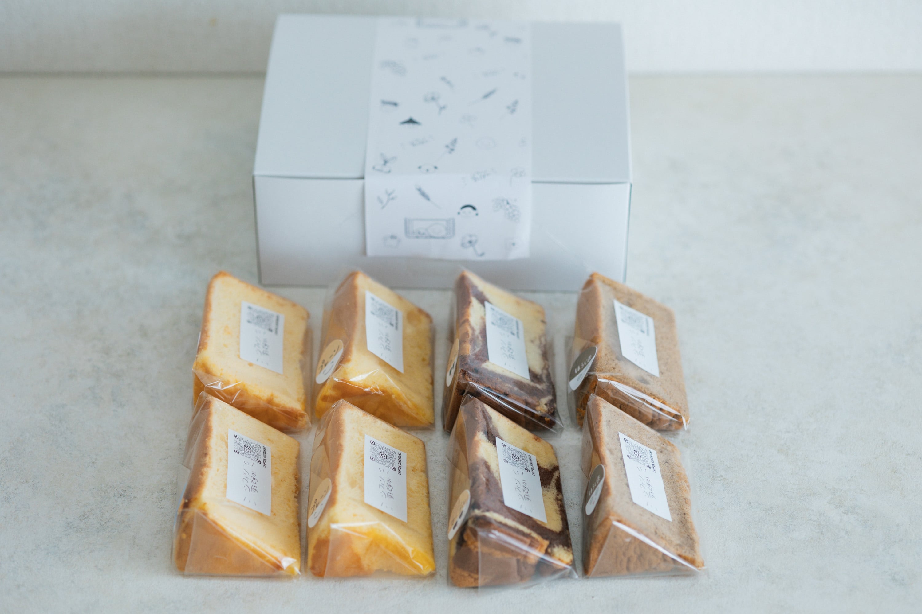 4種類のフレーバーを2つずつ詰め合わせた、8カットのセットでお届けします